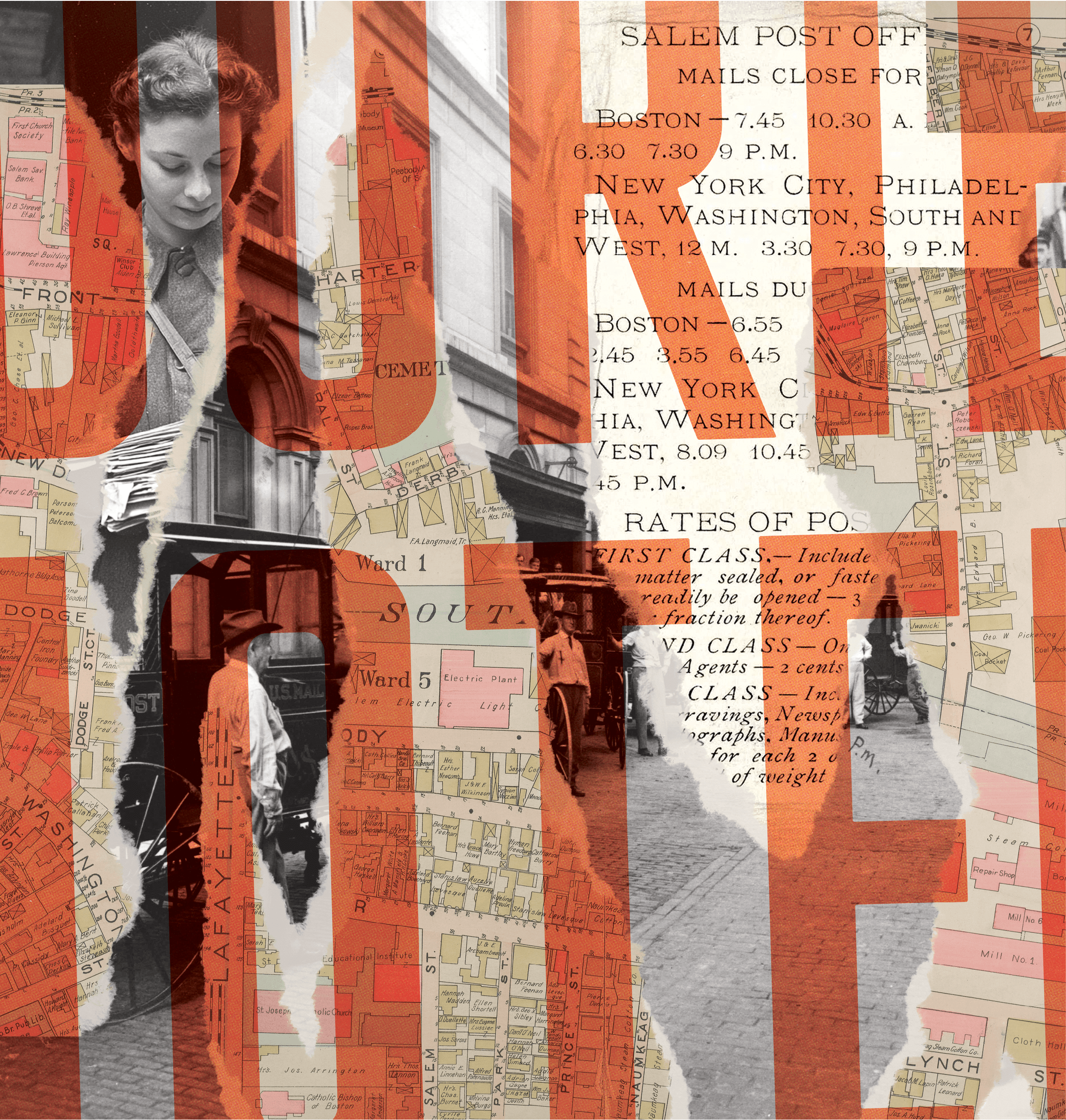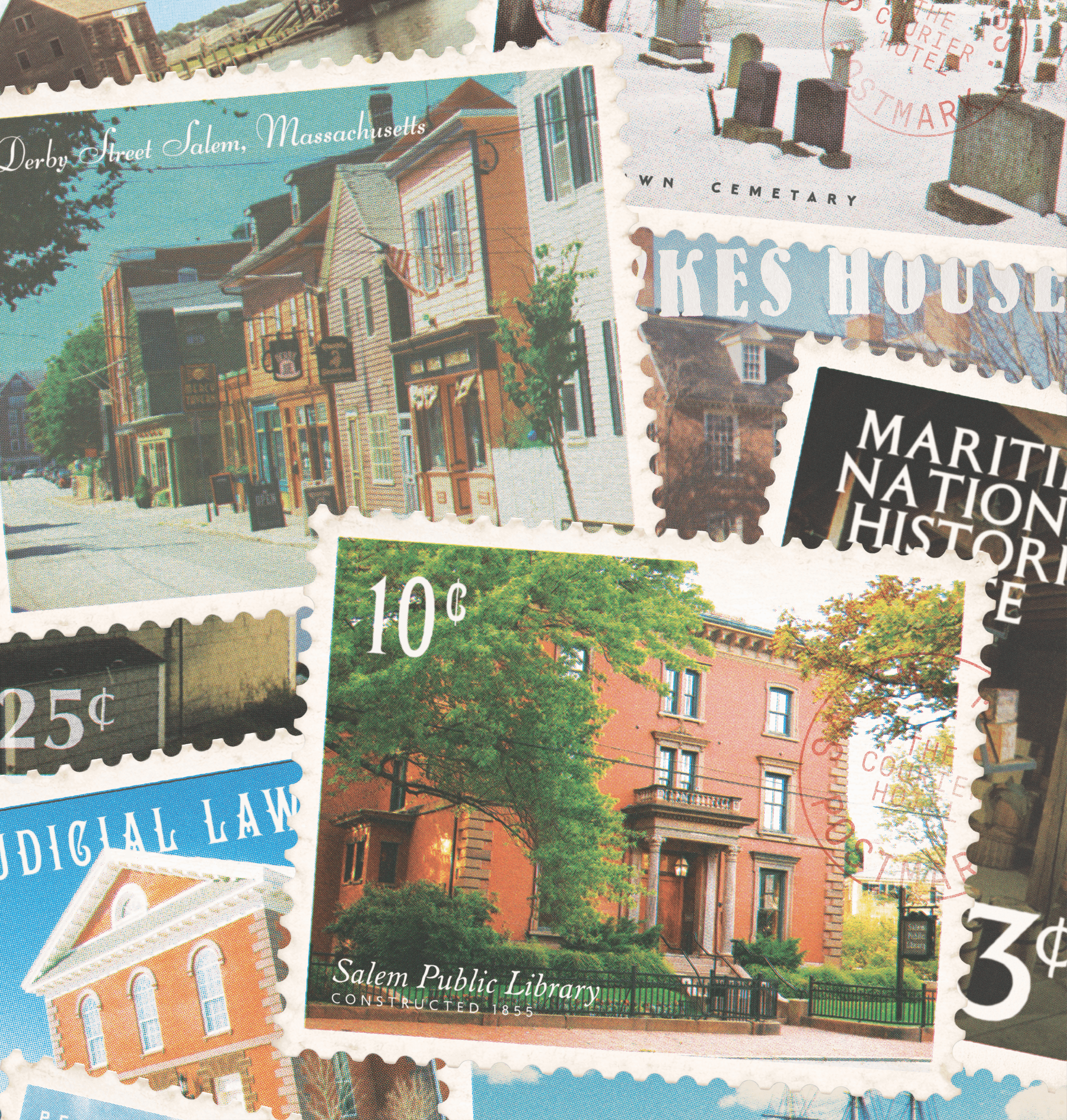 The identity draws from the visual systems of mail and transit. Stamps, postmarks, layered typography, and archival fragments form a flexible graphic language that adapts across applications while maintaining structure. A horse motif references early delivery routes, grounding the idea of movement in Salem’s history. These elements extend across signage, print, and interiors, creating a consistent visual language throughout the space.