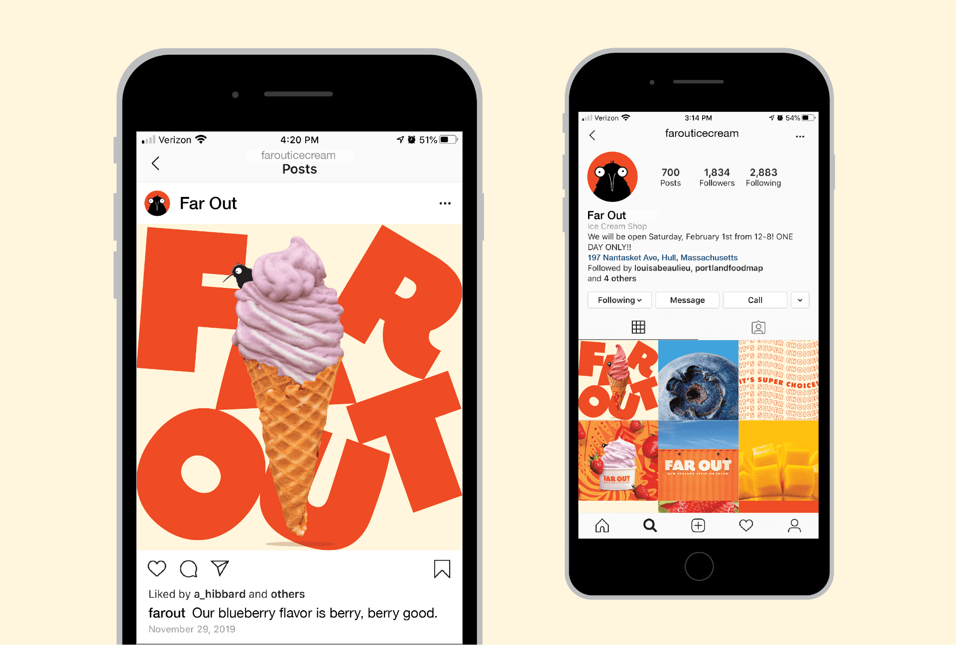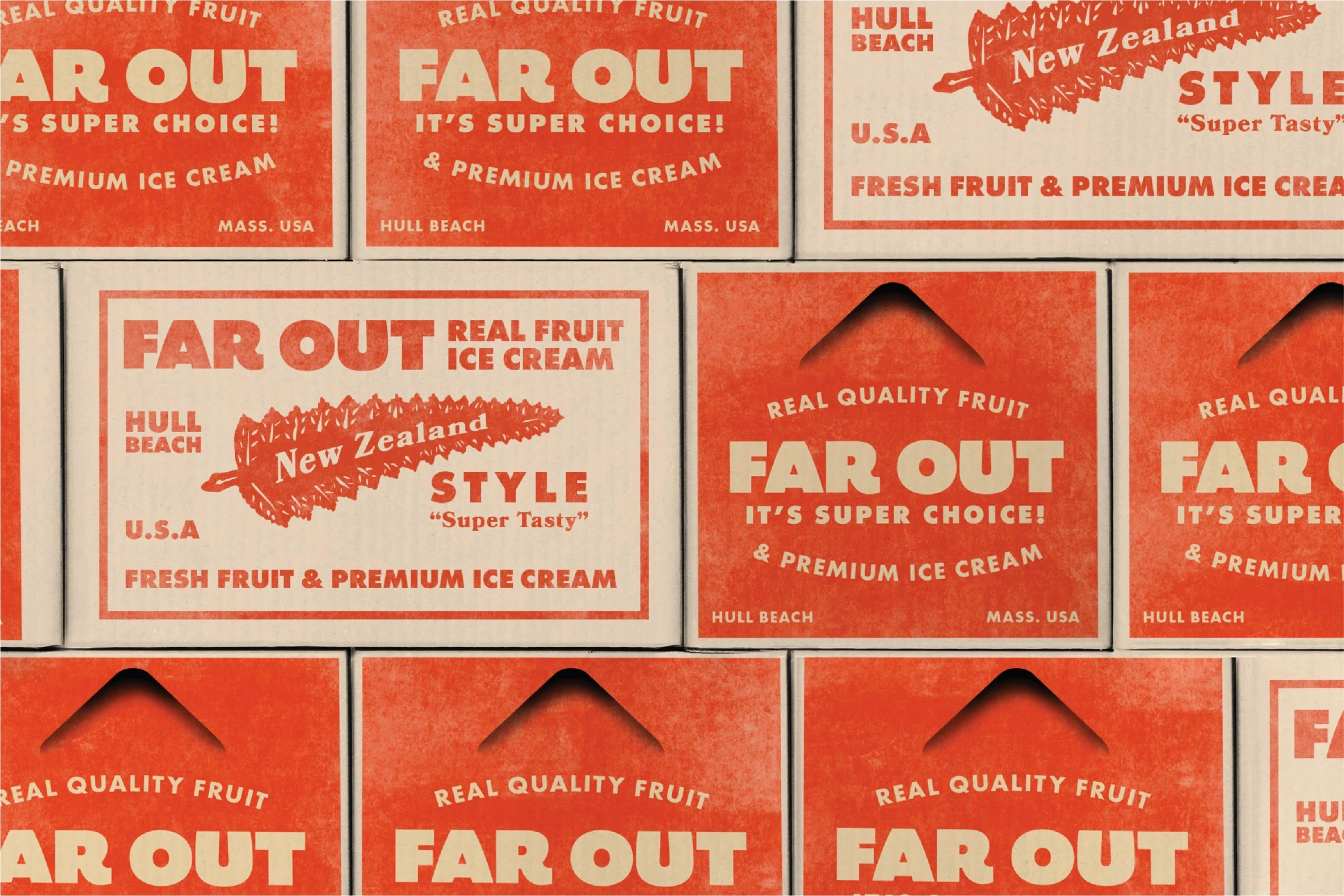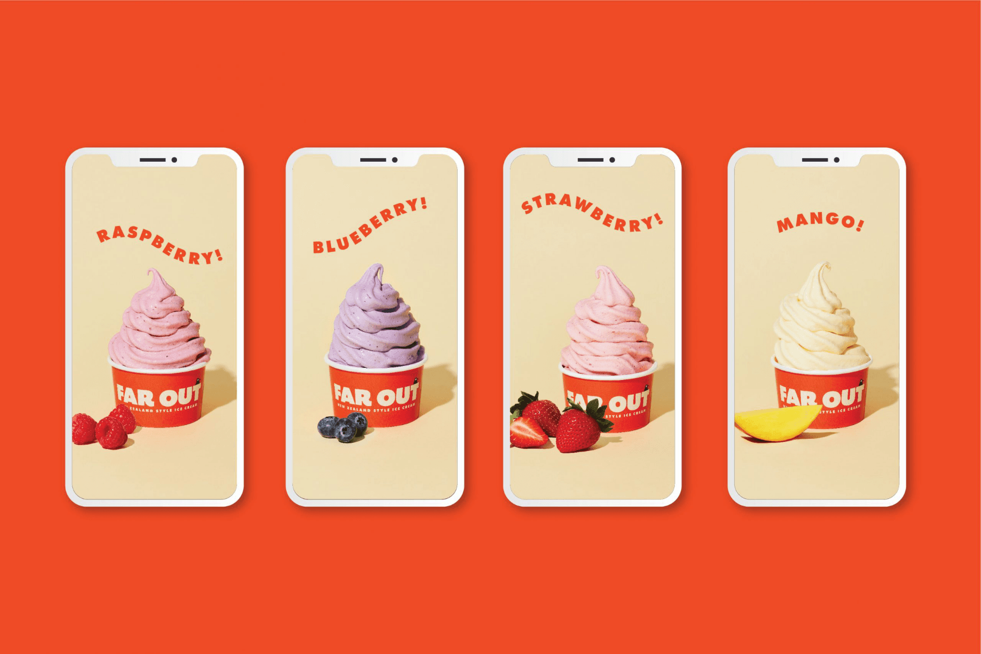 We didn’t want the brand to take itself too seriously because at its core, ice cream is fun. After establishing the “Far Out” name, we knew we had to get funky with our color palette. We embrace big pops of colors found in the fruits of the vibrant New Zealand wilderness. We embraced cartoonish illustration to bring a human element to the visual identity.