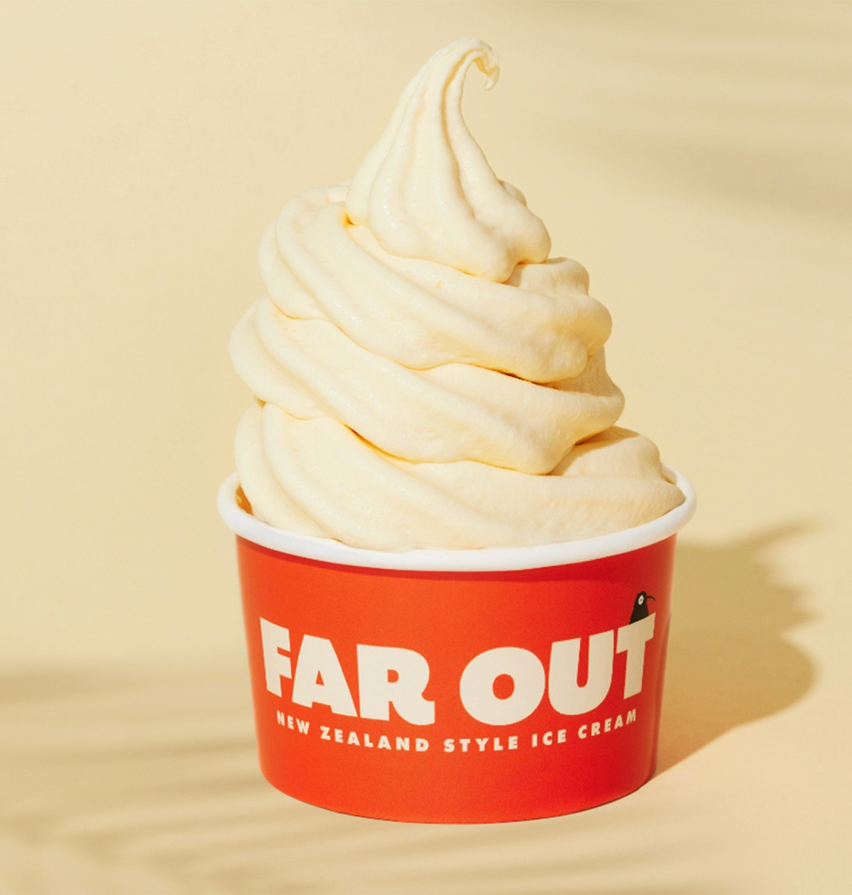 Enzy ended up being an important outcome of the brand exercise, as a mascot, logo, and iconic visual people look forward to seeing both on the walls of the store and across the packaging. Enzy’s form was inspired by New Zealand’s national bird, the kiwi. He’s depicted getting up to antics with visuals of the fruit that go into each ice cream flavor.