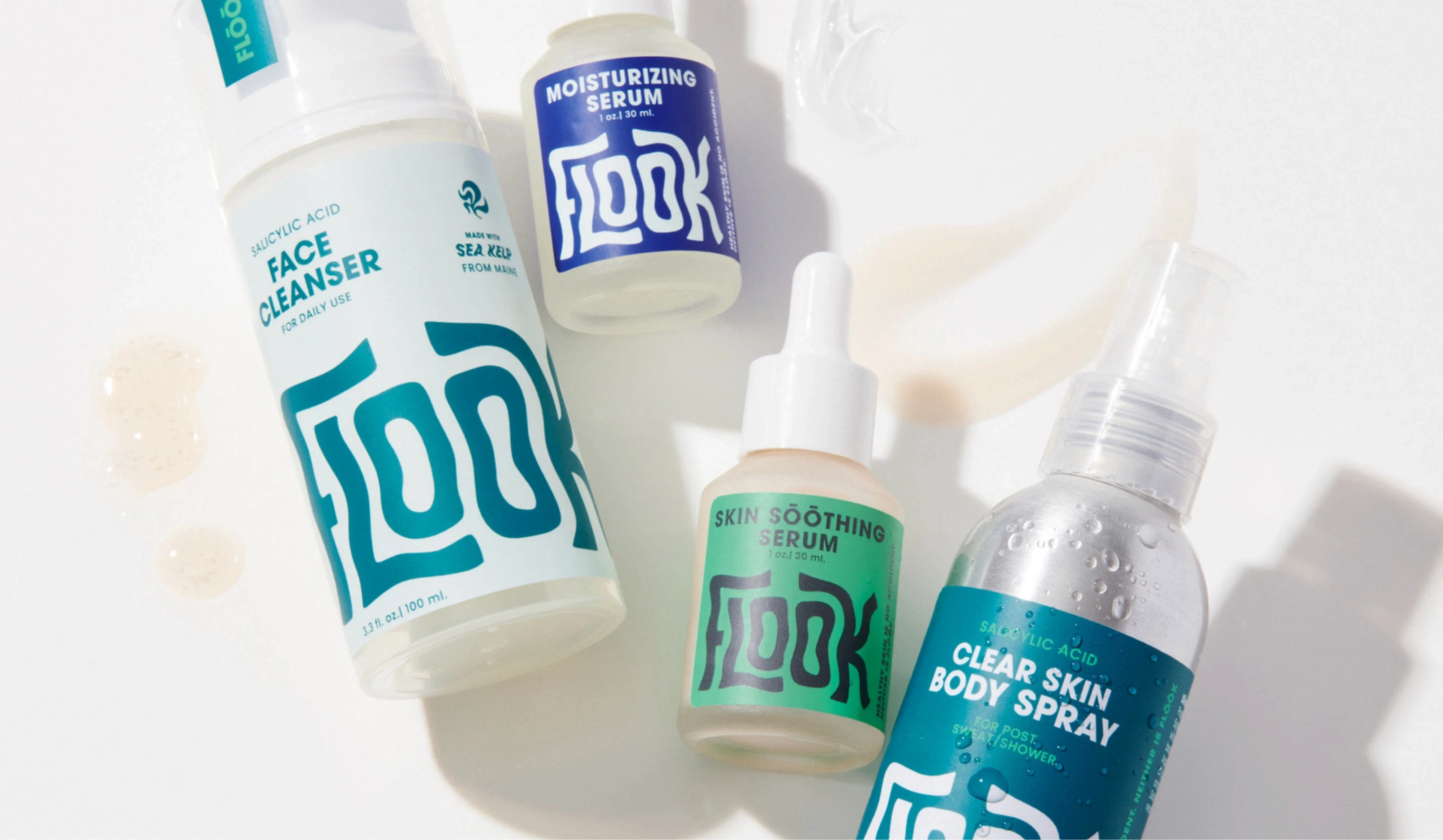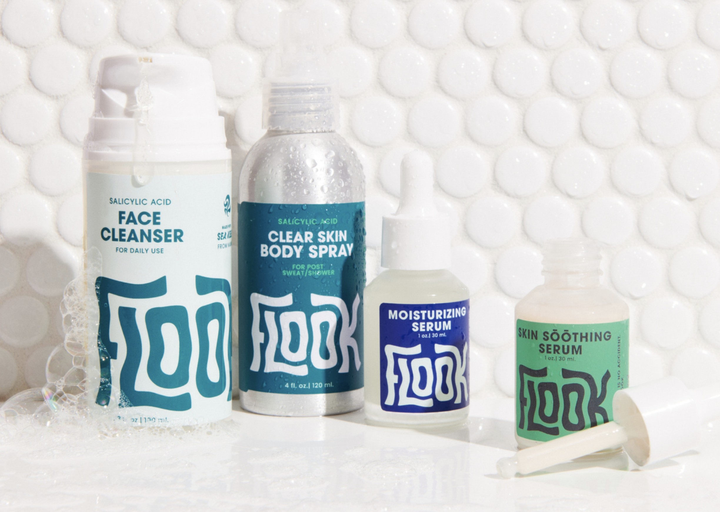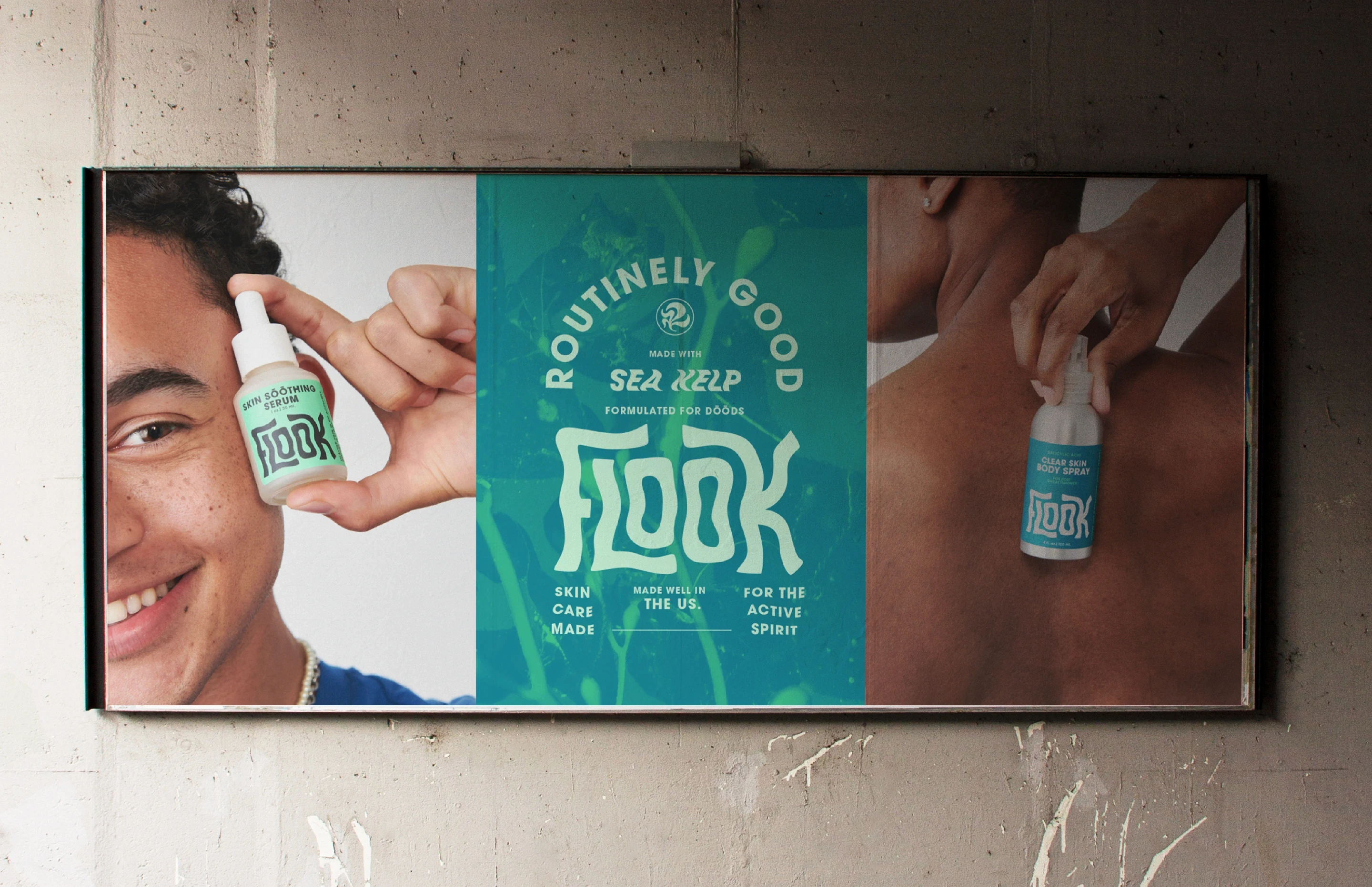Even though Flōōk is a brand meant specifically for young men, the identity had to speak to a generation that doesn’t fit neatly into stereotypical gendered roles. The branding needed to speak to an increasingly environmentally-savvy generation, and simultaneously say, “It’s ok to have a gym routine” and “It’s ok to have a daily skincare routine” without beating anyone over the head with it. That’s a lot of boxes to check!