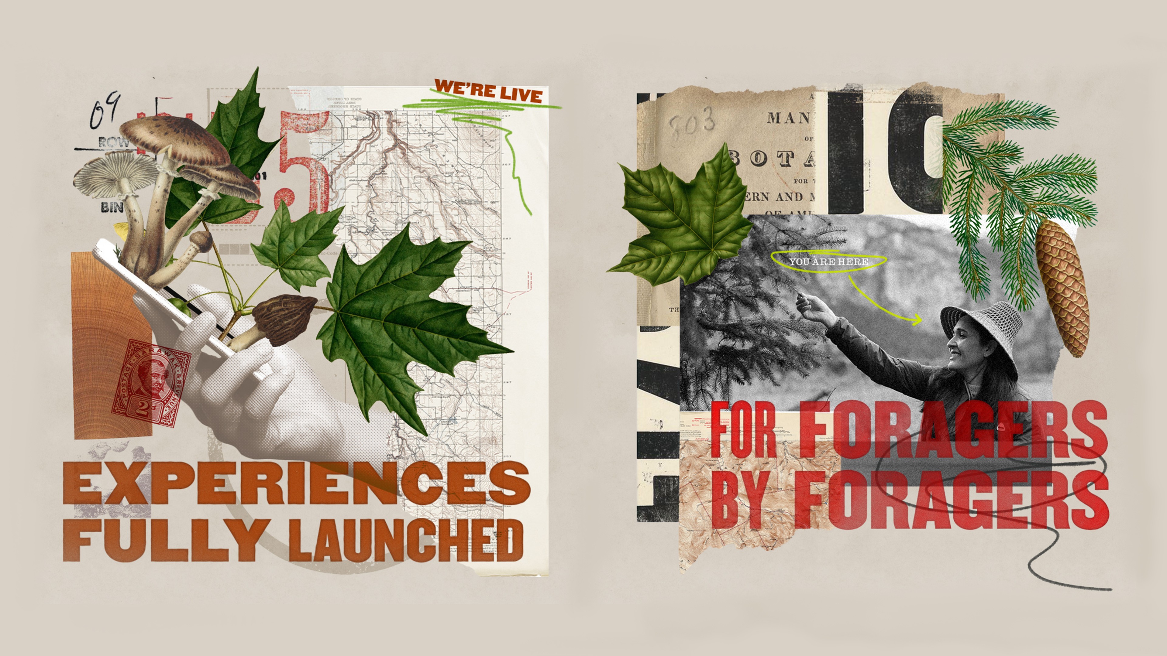 The identity draws from how foraging is documented and shared. Photography focuses on real environments rather than isolated products. Illustration is used selectively to explain species, seasonality, and process. Typography stays restrained, allowing content and imagery to carry meaning. Rather than presenting ingredients in isolation, elements are combined to show relationships between product, place, and person. The system extends across different sellers and regions without becoming repetitive, while maintaining a consistent tone.