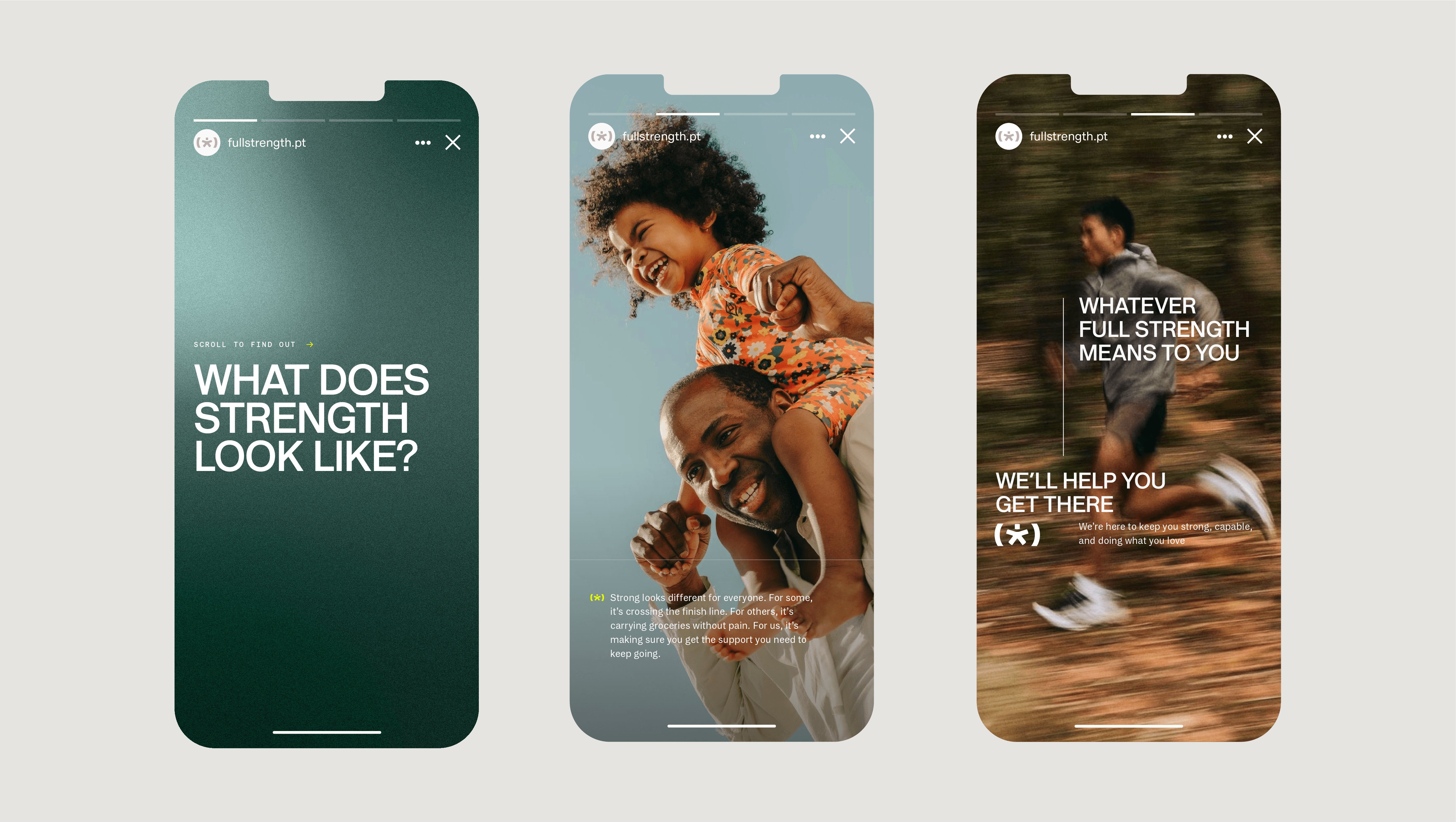 Full Strength sits between two categories. More active than a clinic. More focused than a gym. We removed passive, clinical language entirely, replacing it with messaging built around action, progression, and capability; while maintaining trust and clarity.