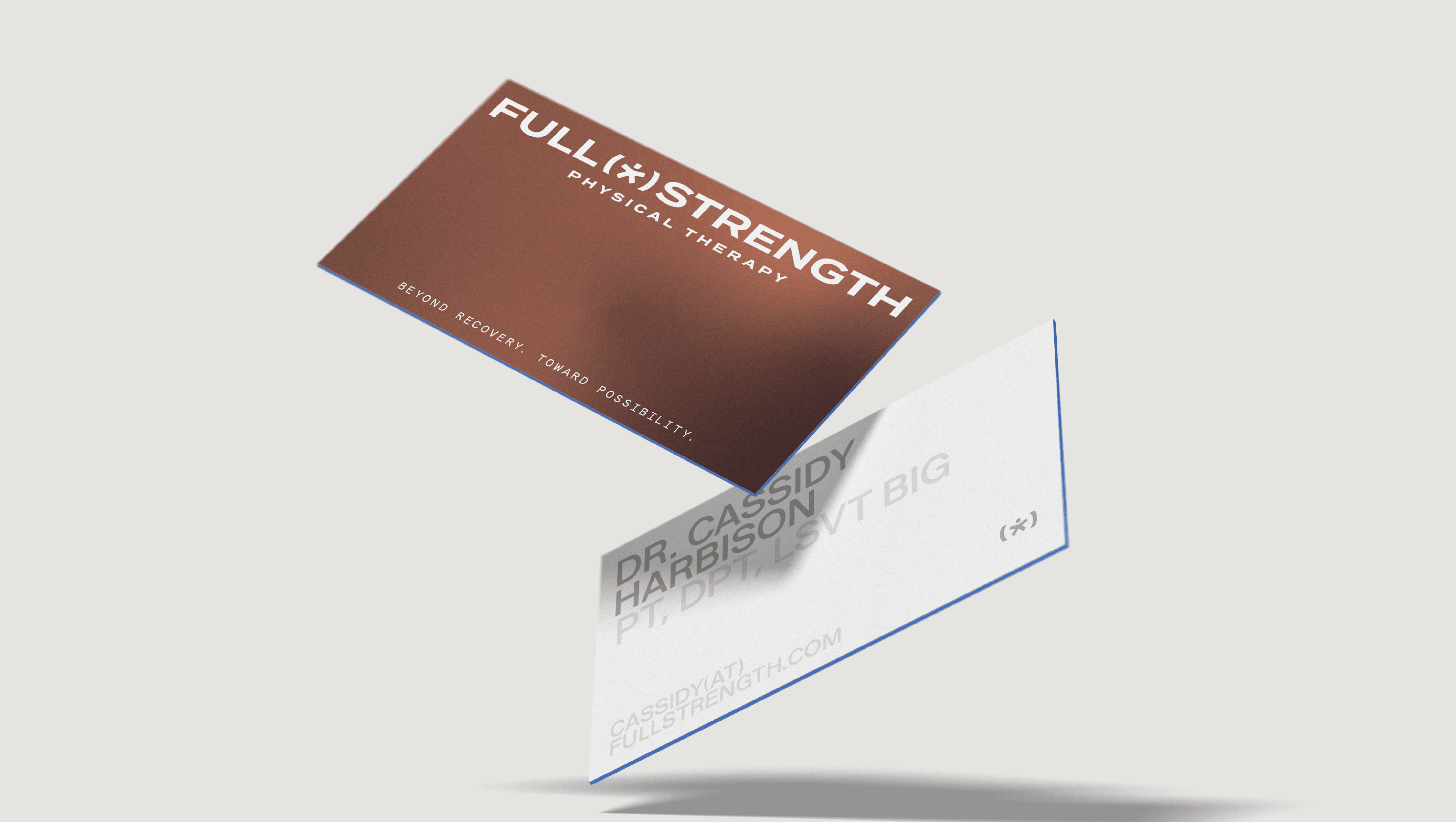 The name Full Strength captures both a moment and a mindset. It marks the point where someone returns to full capacity; but also the ongoing work required to stay there. The language is direct and familiar, intentionally avoiding clinical terminology. This positions the practice closer to performance than traditional healthcare, without losing credibility.
