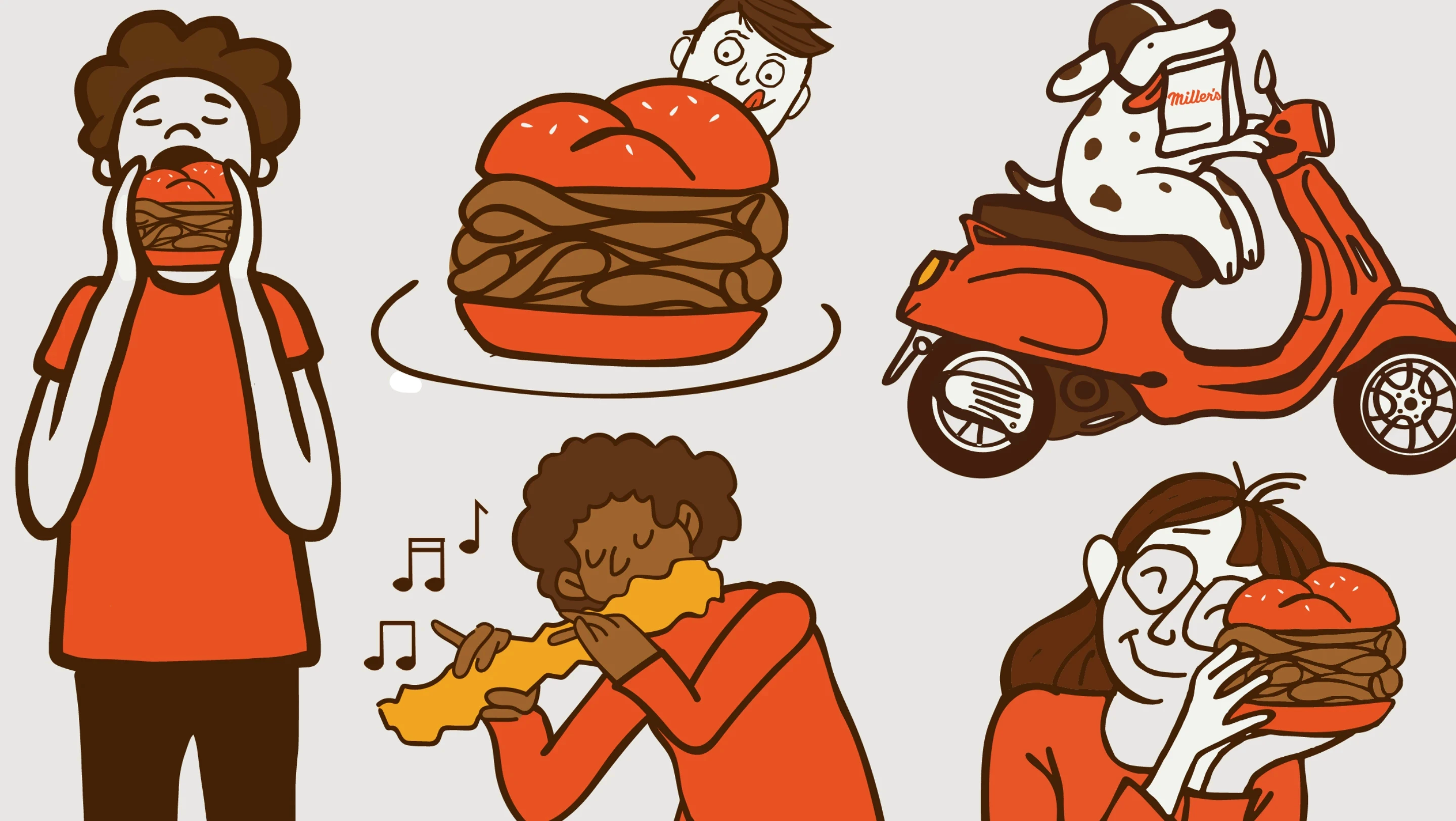 Millers was in need of ownable elements that created a new level of brand recognition. Each illustration aims to personify the community’s love for Millers while playing off clever language.