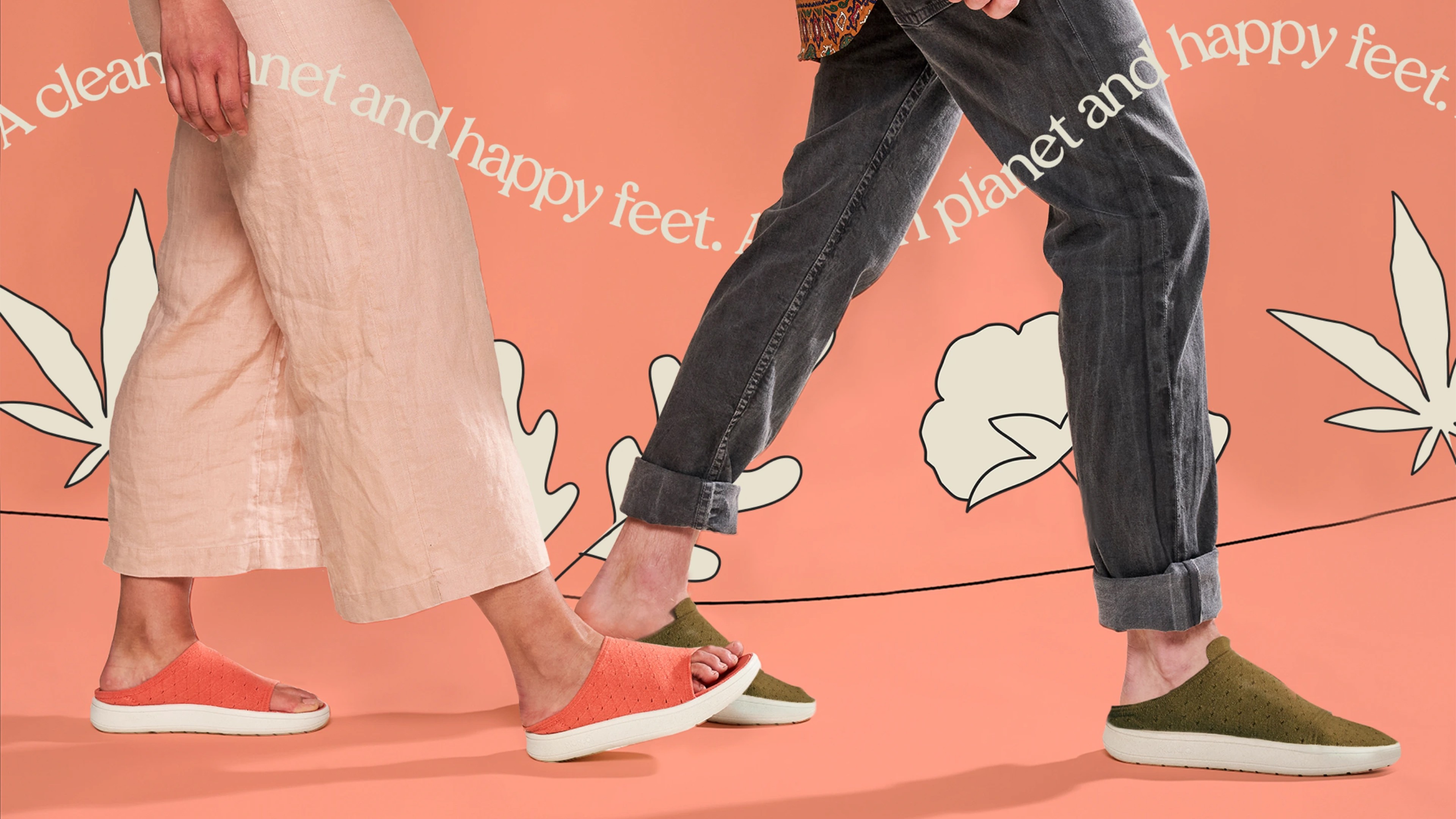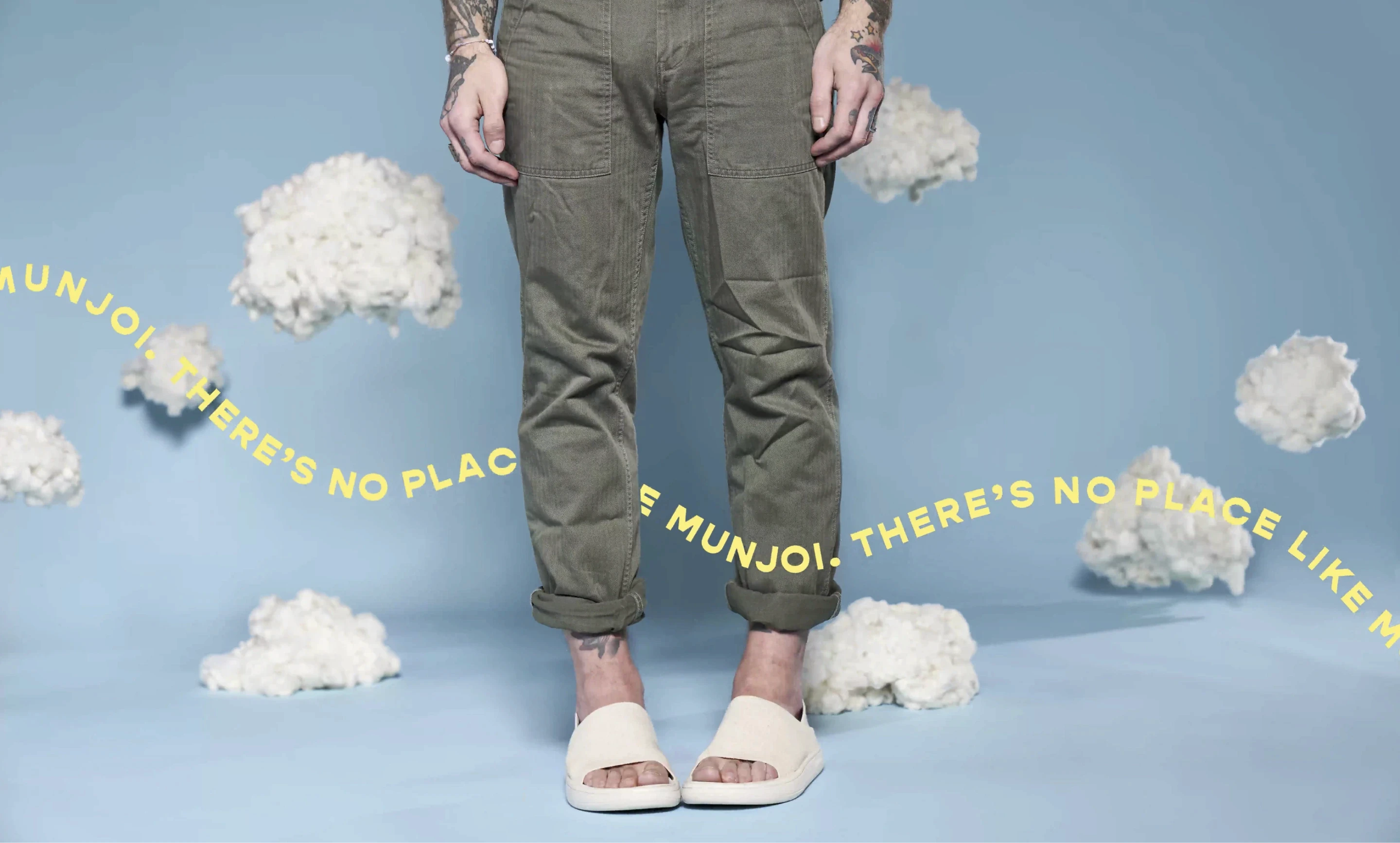 Creative was intended to feel like a dreamscape because a four-in-one shoe feels too good to be true. Floating clouds and lush landscapes evoke this whimsical feeling. We also leveraged hand-drawn illustrations of the plant materials that comprise Munjoi’s shoes. This highlighted sustainability in a way that felt very human and personal. These key visual elements were brought together in brand guidelines that were leveraged to create a consistent identity across all content.