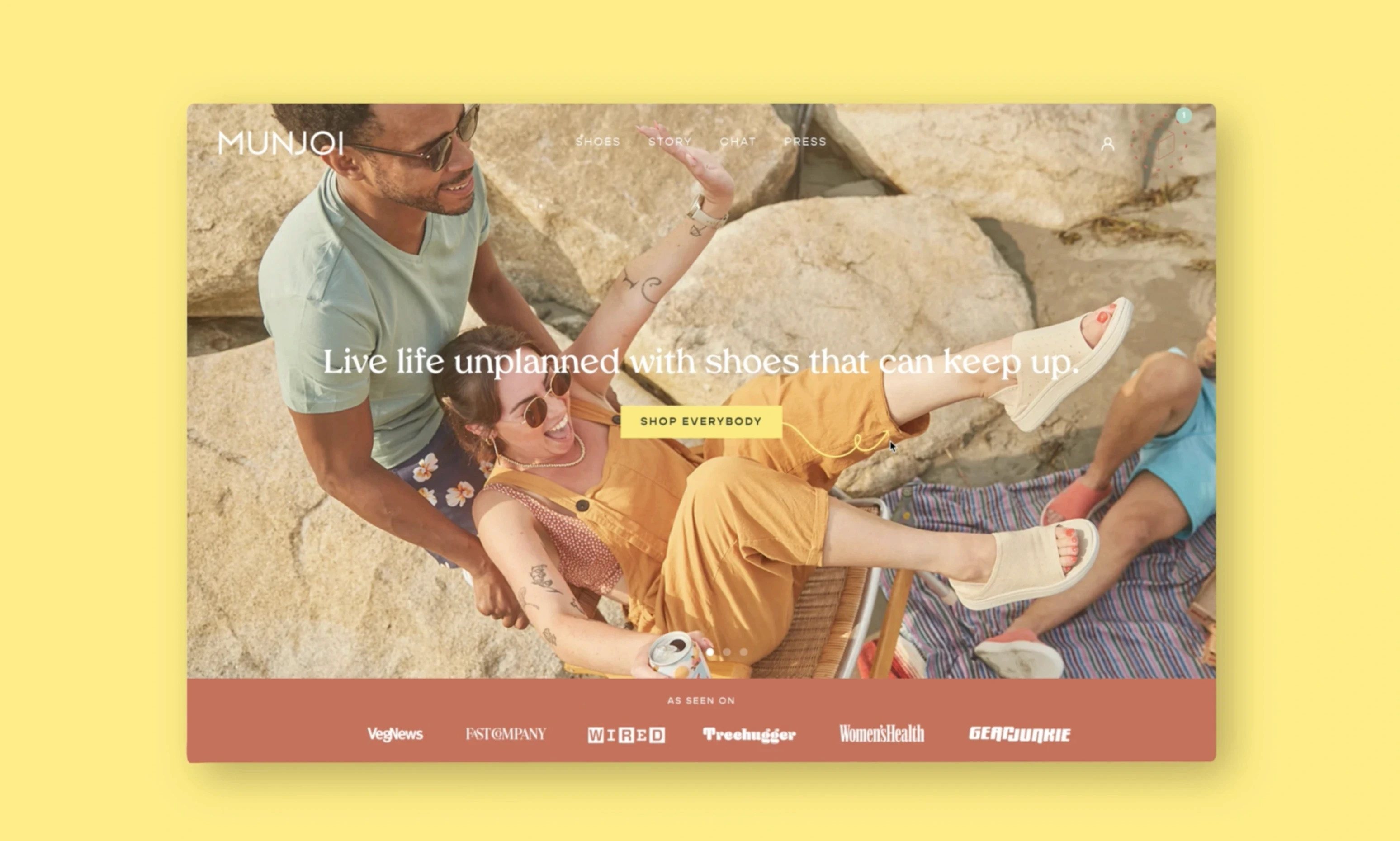 Our campaign had three objectives: illustrate their brand values in a bright, energetic way, highlight the shoe’s key benefits (both in functionality & sustainability), and alter the way Munjoi’s audience perceives the impact of their purchasing habits.